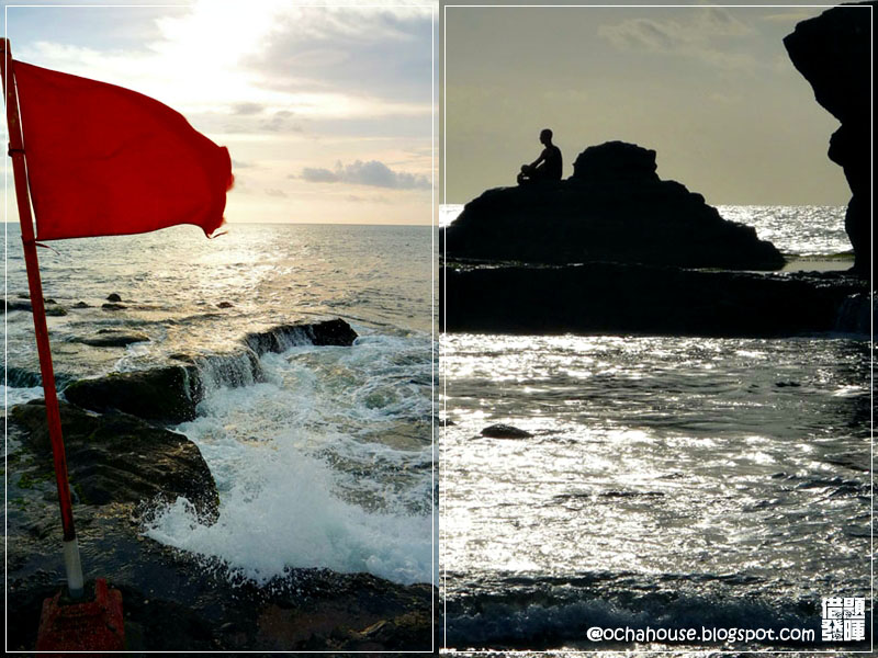 | 想拍「大海無量」的效果,背後一直傳來「來勢洶洶」的海浪聲,卻等不到海浪高過人的效果。海浪滔滔我不怕,可是我怕海嘯,所以神經質地一直留意水平線。 |
